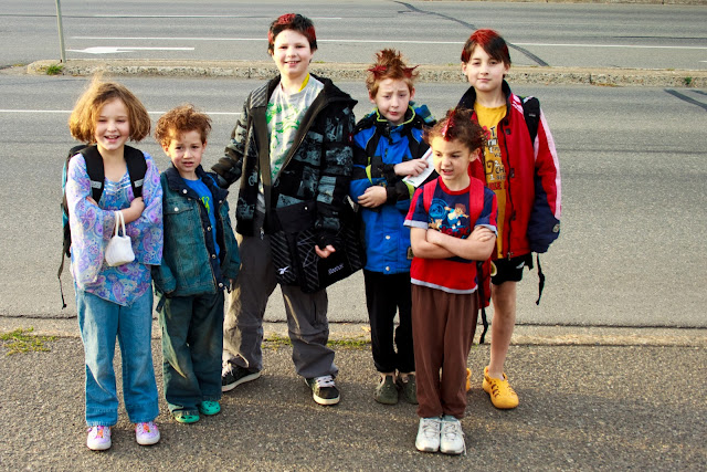 So Friday at school was the Terry Fox run (which didn't happen because of rain) and Wacky Hair Day. My kids LOVE this day. I think the main reason is because not only don't they have to brush their hair when they wake-up but they get to make it worse. Here are Fridays fun hair.